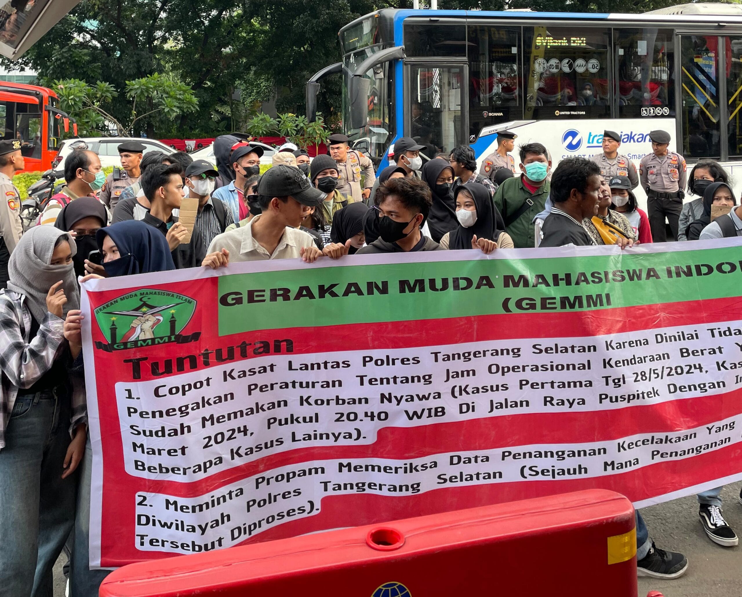 JAKARTA| FMI.COM – Gerakan Muda Mahasiswa Islam (GEMMI), melakukan demonstrasi di depan Markas Besar Polisi Republik Indonesia (Mabes Polri). Masa aksi menuntut Kasat Lantas Tangerang Selatan Dicopot dari jabatannya.