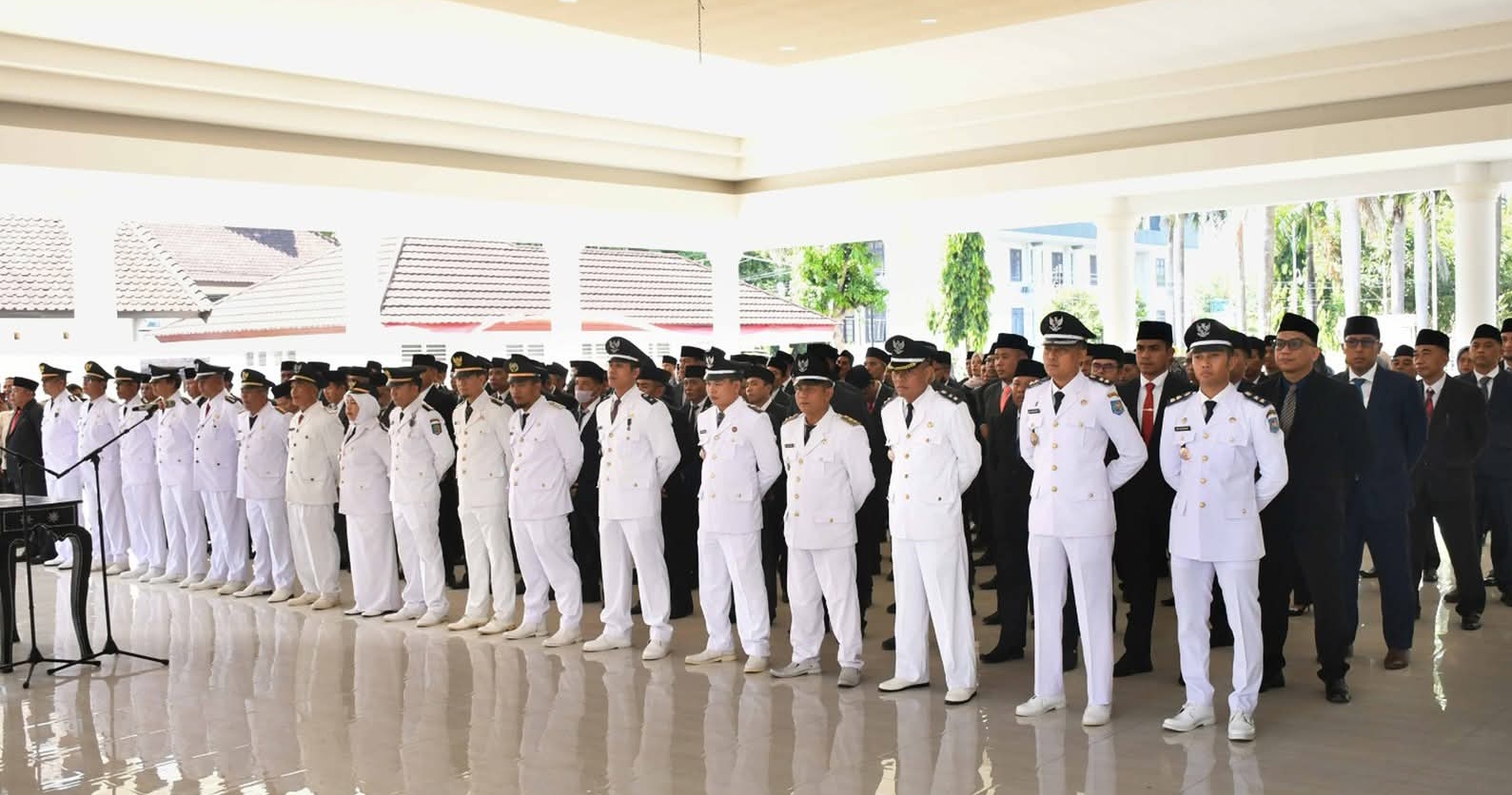 Pengambilan sumpah jabatan dipimpin oleh Wakil Bupati, Edwin Hadiwijaya dan disaksikan Bupati Haerul Warisin didampingi Sekretaris Daerah, Juaini Taofik, di Pendopo Bupati Lombok Timur