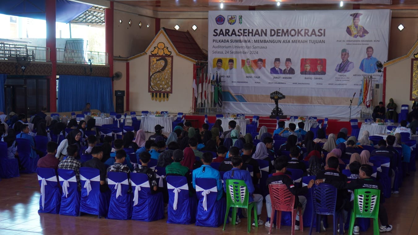 Kegiatan yang bertajuk “Pilkada Sumbawa : Membangun Asa Meraih Tujuan” tersebut dihadiri oleh badan pengawas pemilu (Bawaslu) serta seluruh lapisan masyarakat Sumbawa yang tergabung dalam berbagai lembaga organisasi kemahasiswaan dan kepemudaaan serta Forkopimda setempat.