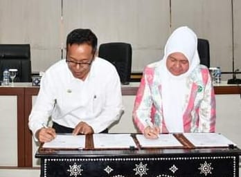 Penandatanganan dilakukan oleh PJ Bupati Lombok Timur, Juaini Taofik bersama General Manager Divisi Dana dan Jasa PT. Bank NTB Sri Wahyuni.
