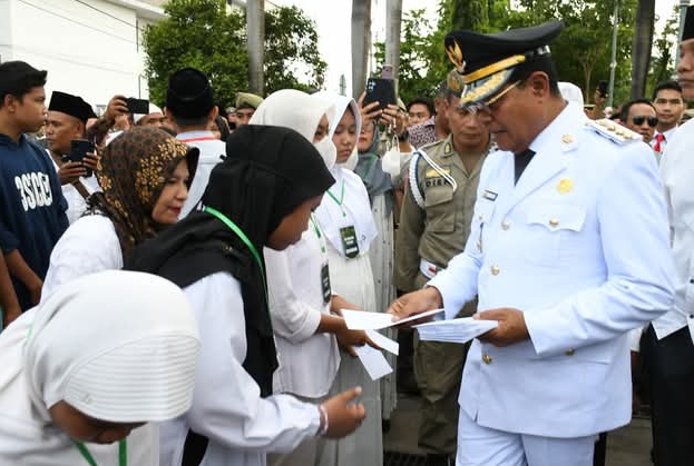 Memasuki halaman Pendopo keduanya menyerahkan santunan kepada sejumlah anak yatim piatu, LKSA, dan menyerahkan kendaraan operasional pelayanan Adminduk kepada Dinas Dukcapil Lotim.
